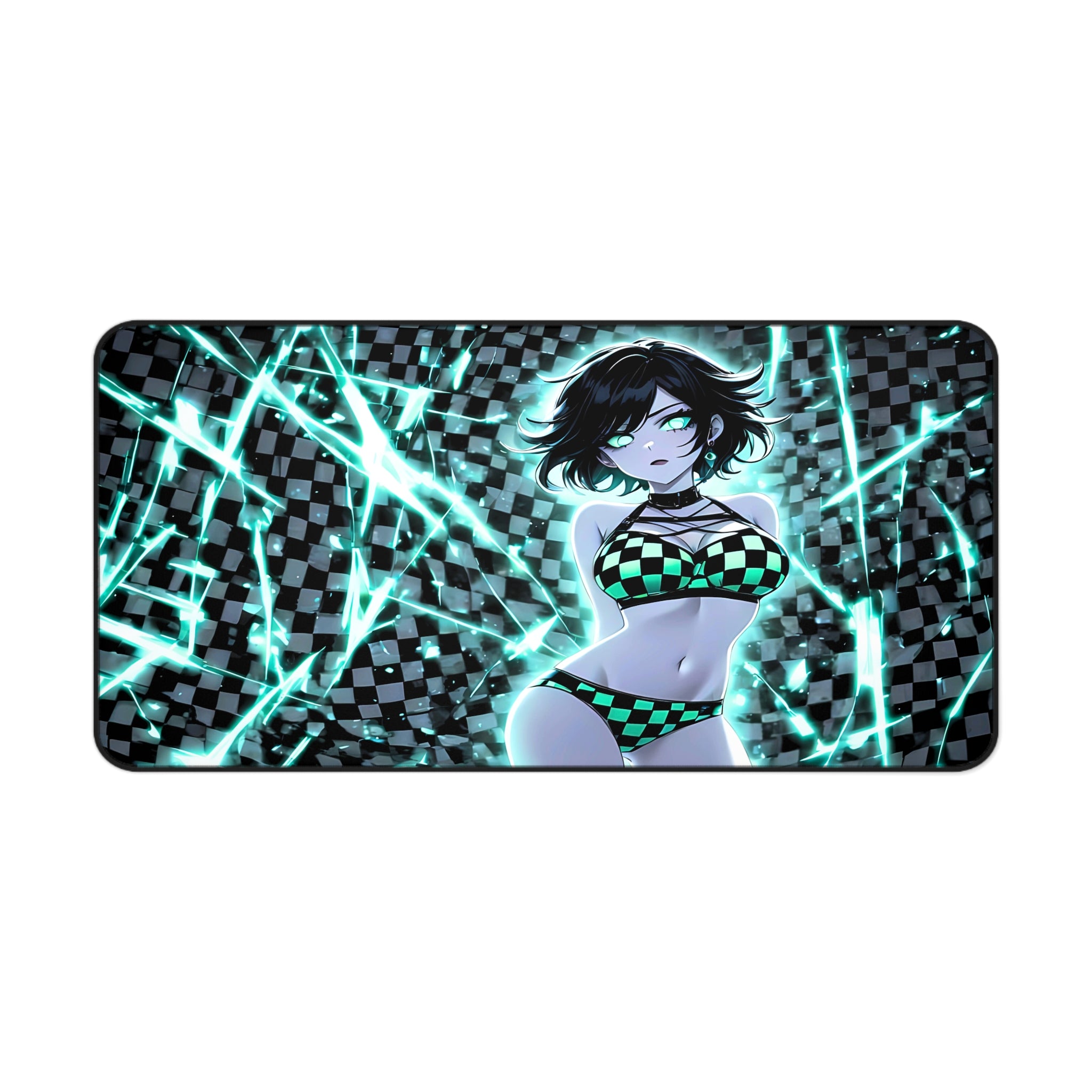 Kawaii Blue Checkers Goth Girl Desk Mat