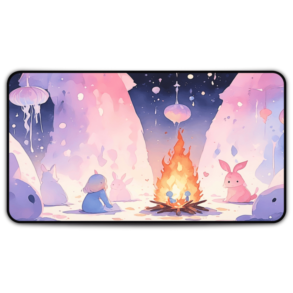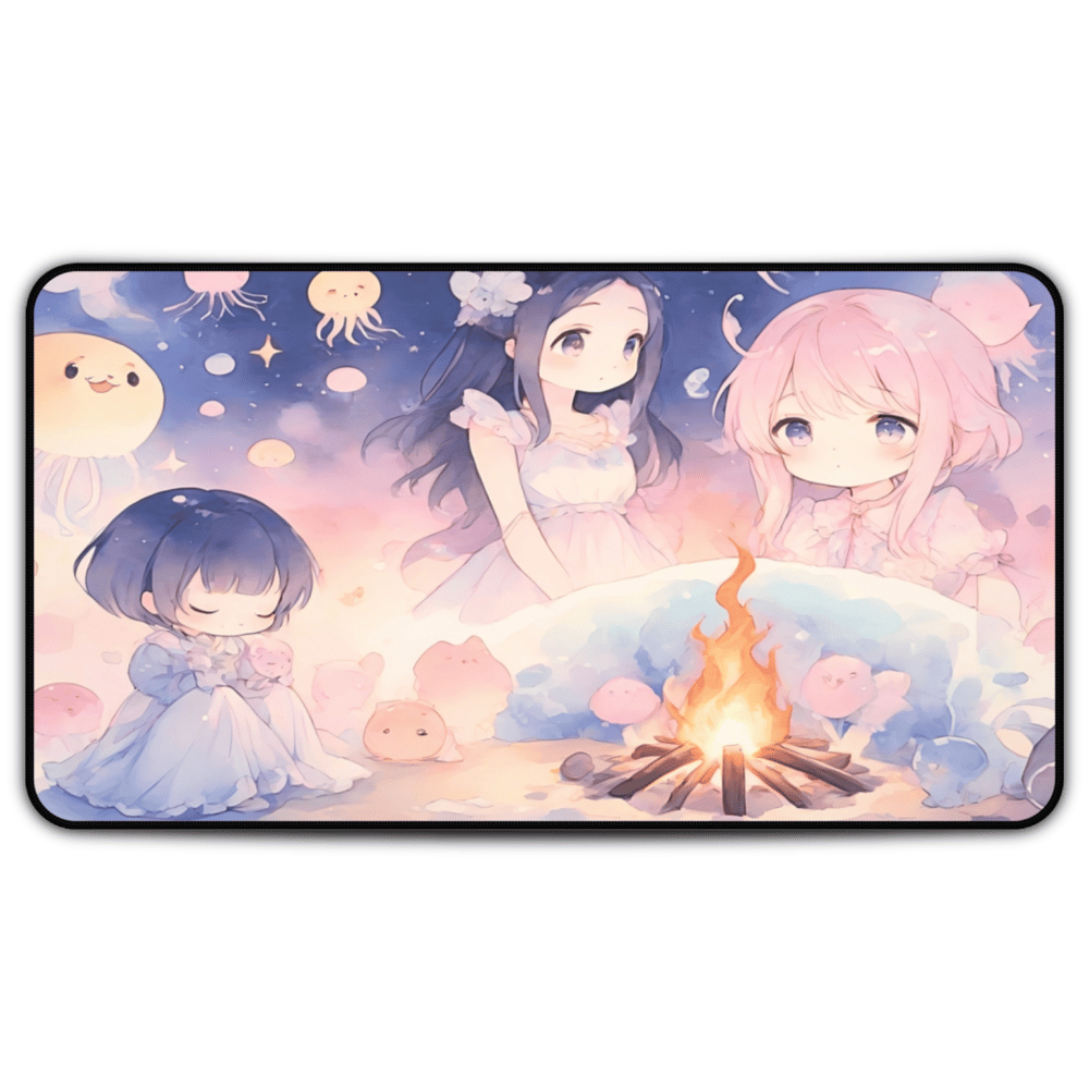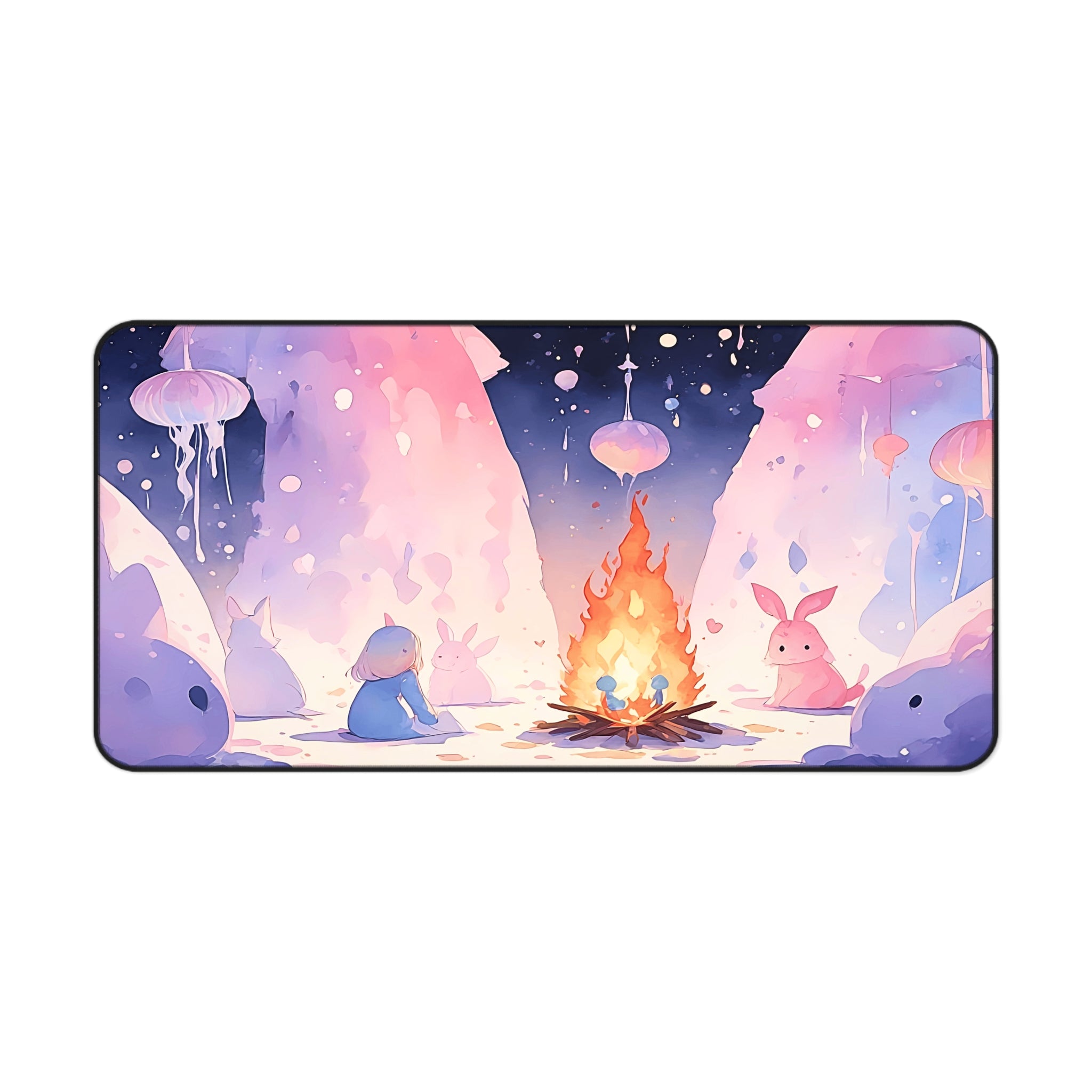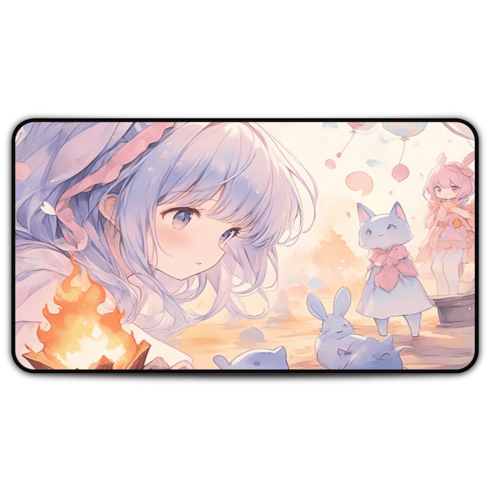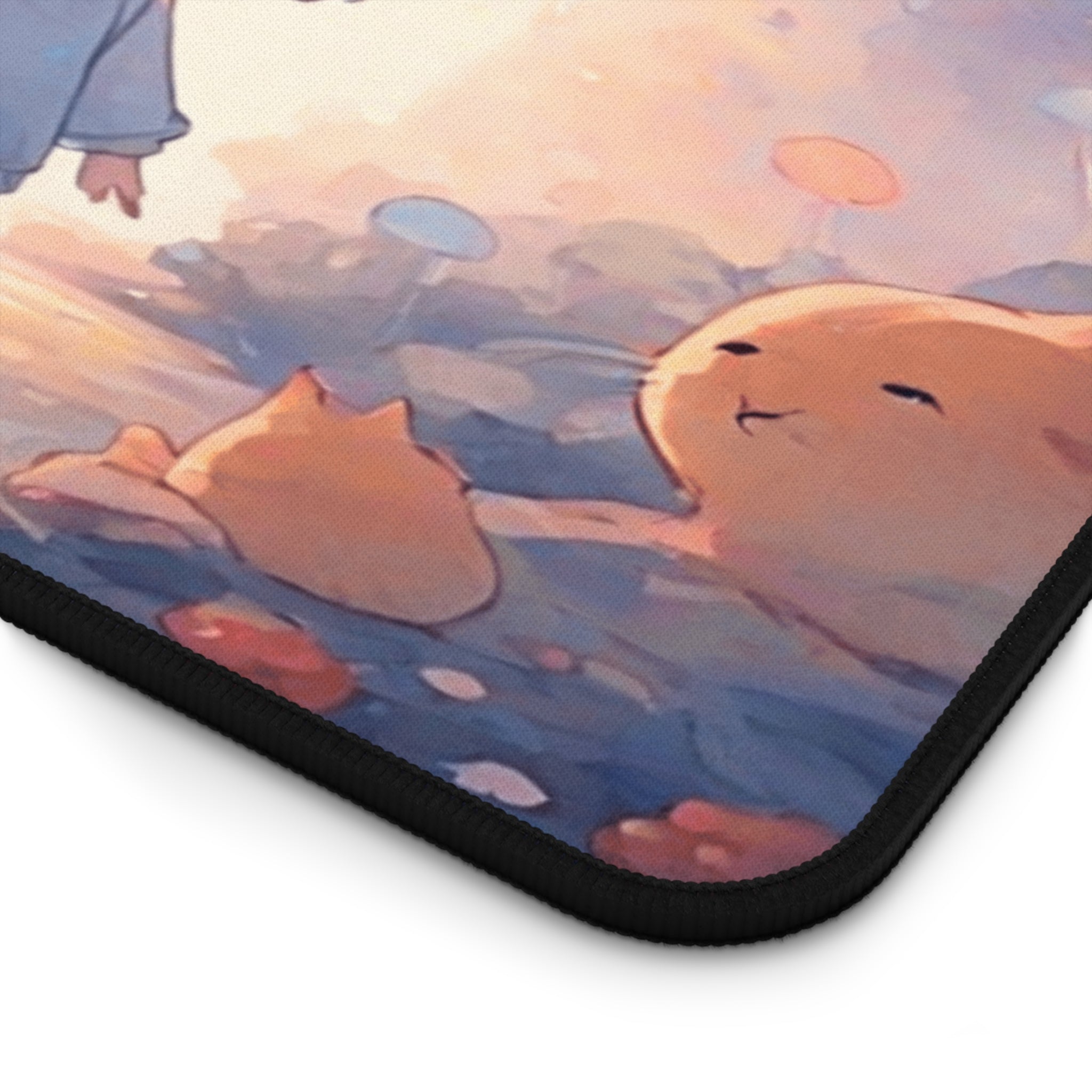 Bedtime Joy – Cute Anime Girl with Bunny & Cat Desk Mat