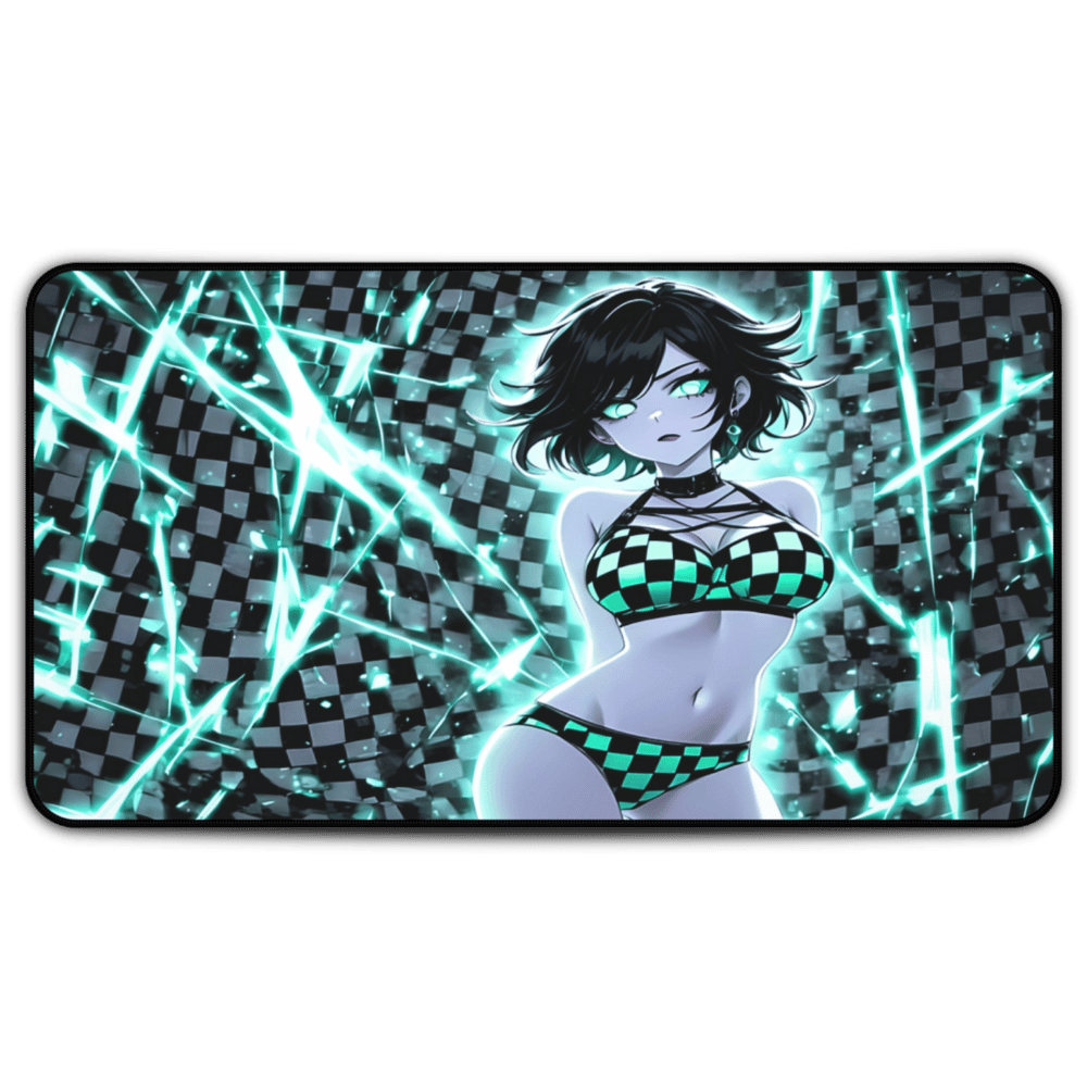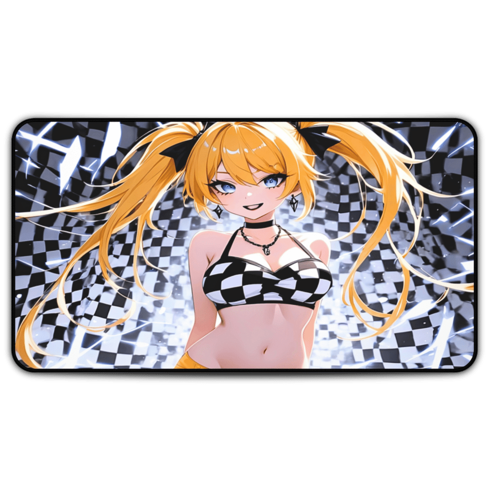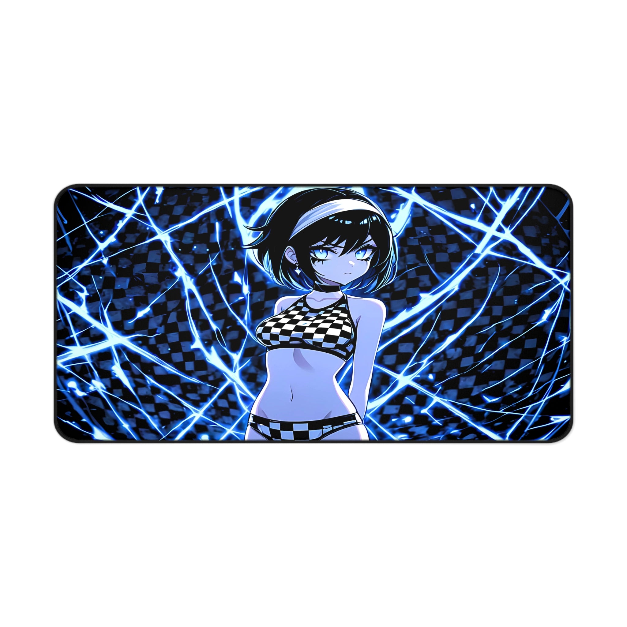 Blue Checkers Annoyed Goth Waifu Desk Mat