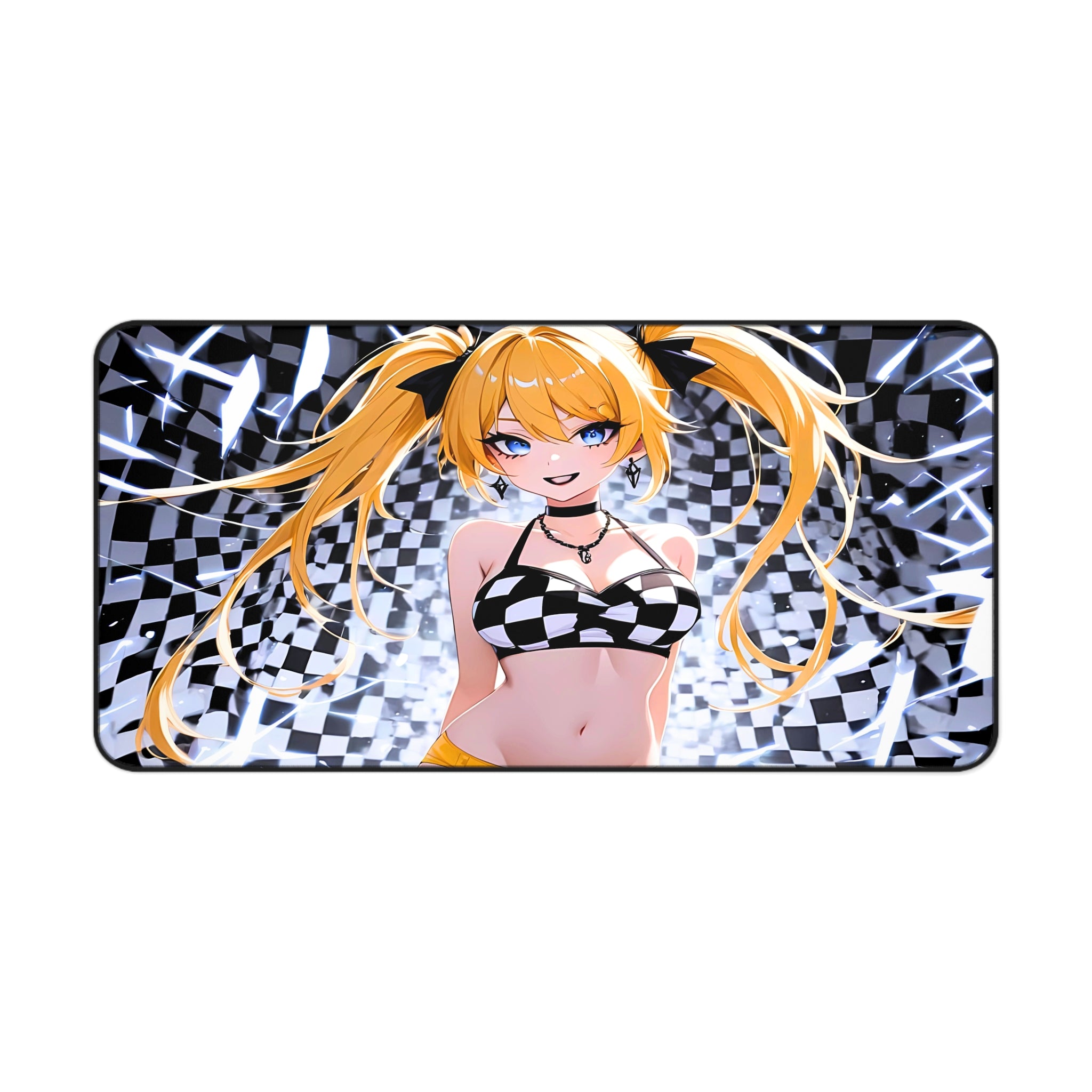 Sexy Yellow Checkered Lingerie Goth Girl Desk Mat