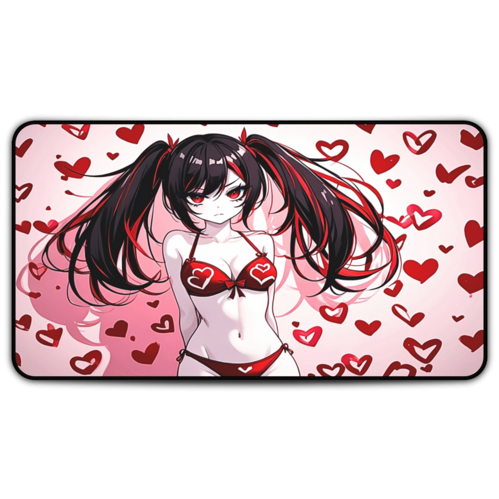 Red Hair Goth Waifu Desk Mat "Bloody Love"