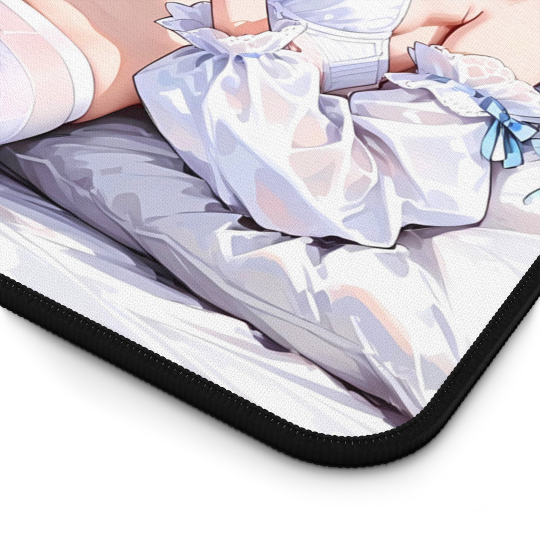 Cute Blonde Bedtime Gamer Girl In White Lingerie Anime Desk Mat